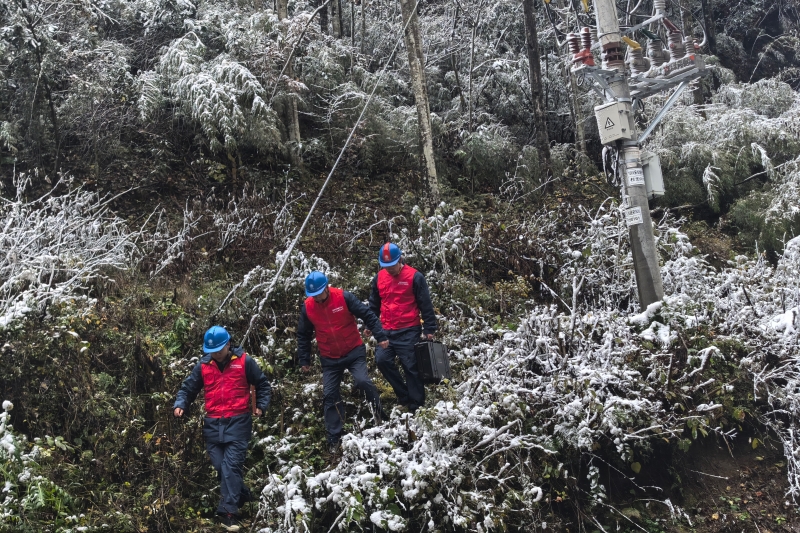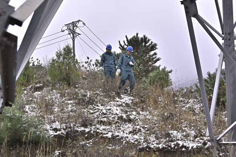 国网湖北神农架供电公司员工深入林区开展线路特巡,保障冬季可靠供电。