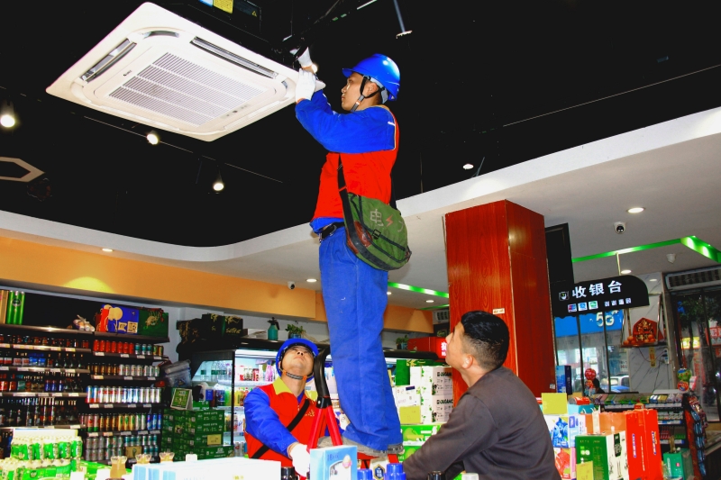 国网山东德州供电公司员工到换热站协助客户检查用电设备。